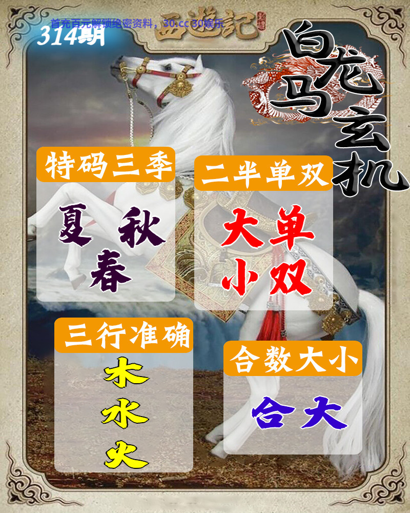 314期:六肖【马猪虎鸡蛇】开:羊23中